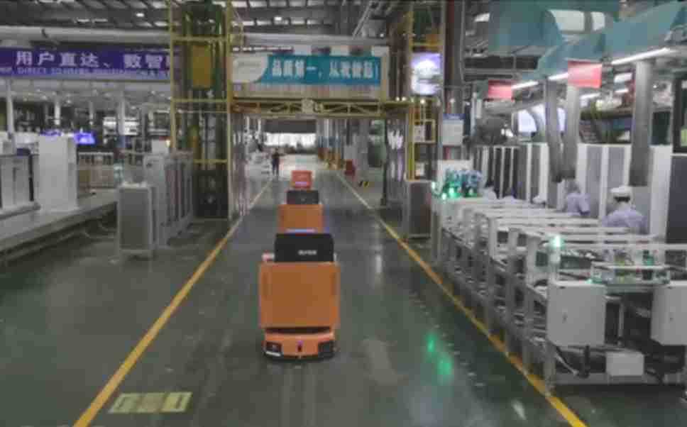 为车载冰箱物流配送打造的智能解决方案,,,,包含产中物流通过潜伏举升AMR搬运至线边,,,产后成品物流智能仓储,,流程包含产中物流智能齐套入库,,,,线边安灯叫料AMR智能配送至线边,,,成品入库、、、出库,,通过无人堆高车机器人,,,智能仓储管理替代人工作业管理,,,实现更高存储、、、更高效率、、、更具柔性化的解决方案。。。